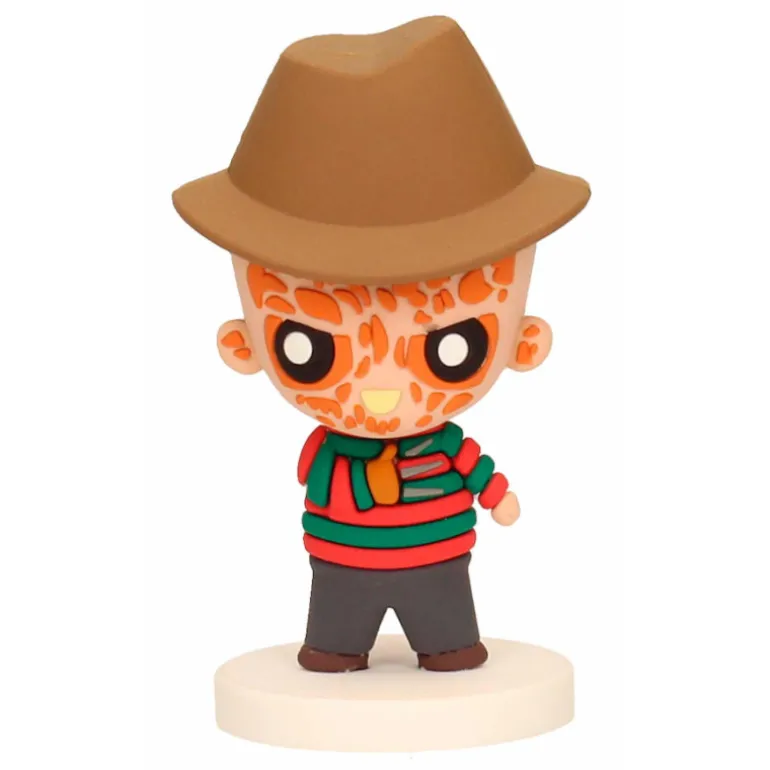 Una figura que es una auténtica monada, de tan solo 6 cm, fabricada en goma rígida, e inspirada en un de los personajes más icónicos del cine de terror y las pelis de los 80: Freddy Krueger de Pesadilla en Elm Street.
