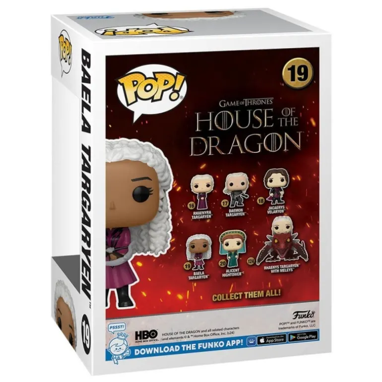 Descubre la impresionante figura POP! TV de Baela Targaryen de La casa del dragón. Diseñada por Funko, esta figura de colección de vinilo mide aproximadamente 9 cm y captura a la perfección los detalles del personaje, haciendo honor a su imponente presencia en la serie. Su cabello blanco rizado y su atuendo colorido se destacan en esta representación estilizada que todo coleccionista de Game of Thrones deseará tener. Un gran añadido para tu colección de figuras POP!, con su presentación en una caja decorativa que incluye detalles de la serie y otros personajes coleccionables. Perfecta para exhibir o regalar a los fanáticos de la serie.