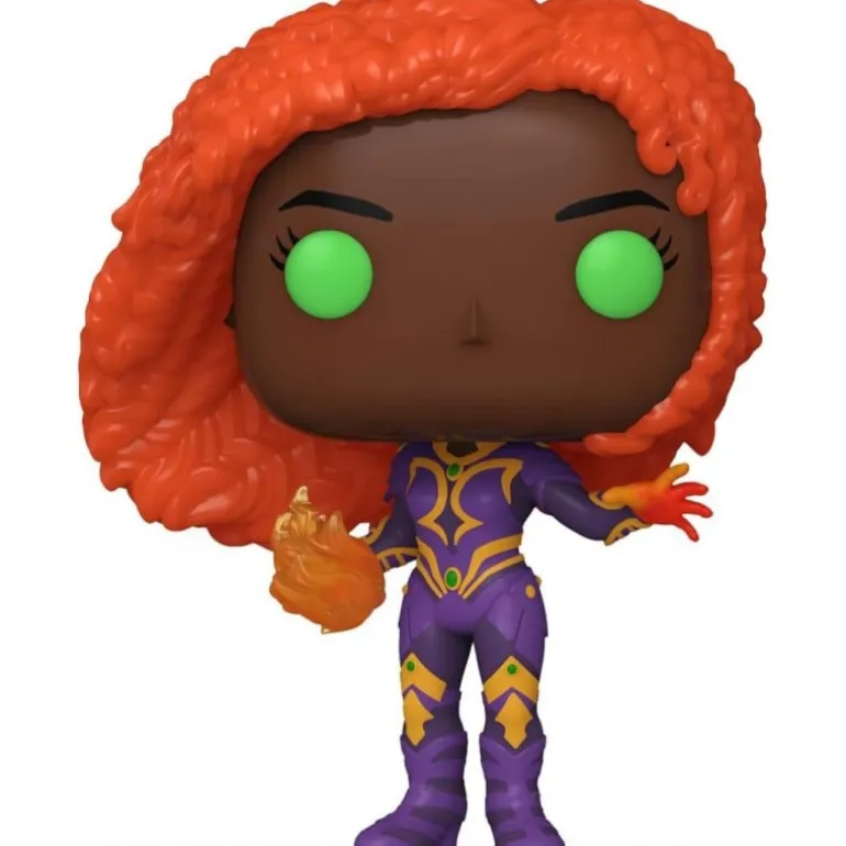 Descubre la Figura POP! TV Vinyl Starfire de la serie DC Comics, una pieza imprescindible para cualquier coleccionista. Esta figura de vinilo, fabricada por Funko, captura a Starfire con un detallado atuendo morado adornado con detalles en amarillo y verde, y su llamativa melena naranja. Su expresión y ojos verdes resaltan su esencia alienígena y poderosa presencia.