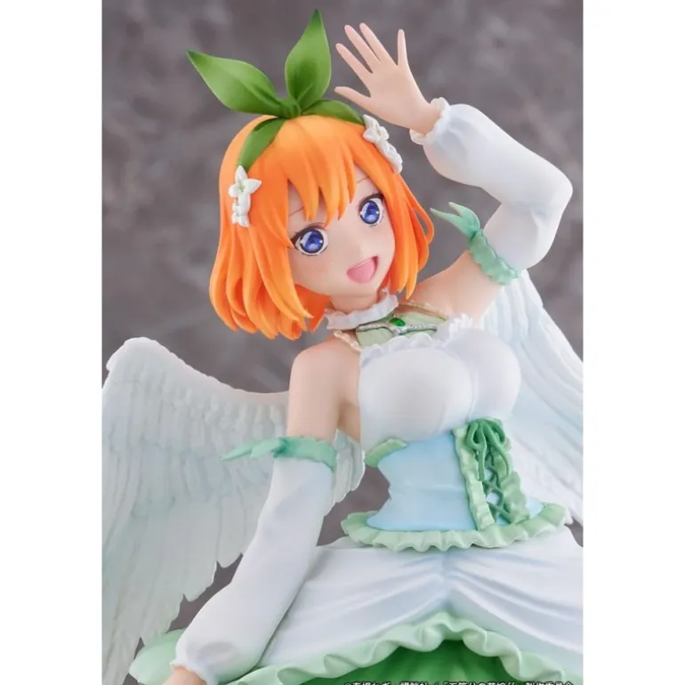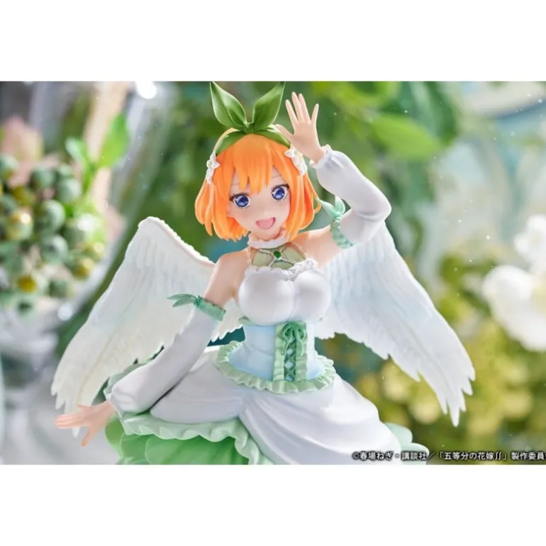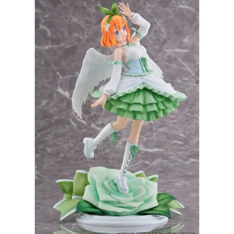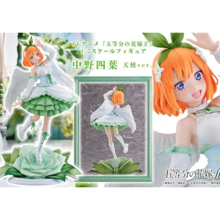 Descubre la estatua PVC 1/7 de Nakano Yotsuba en su versión ángel, una obra maestra para los verdaderos admiradores de The Quintessential Quintuplets. Esta figura, fabricada por Proof, mide aproximadamente 27 cm de altura. Su diseño captura a Yotsuba con un aspecto angelical, adornada con un vestido blanco con volantes verdes, que acentúa su pose dinámica y su alegría característica. La figura resalta por su atención al detalle, desde las alas blancas cuidadosamente esculpidas hasta su expresión encantadora y cabello naranja brillante.