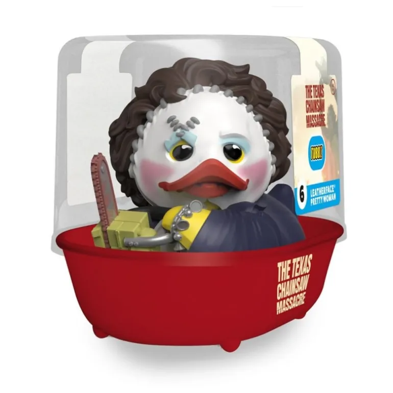 Descubre la singular figura de Leatherface en su versión ‘Pretty Woman’, una representación única del popular personaje de La Matanza de Texas. Esta figura de PVC de 10 cm captura su esencia con un divertido giro, transformando a Leatherface en un pato de baño. Fabricada por Numskull, cada detalle, desde su traje hasta la icónica motosierra, está cuidadosamente esculpido, ofreciendo un artículo de colección imprescindible para los fans del horror.