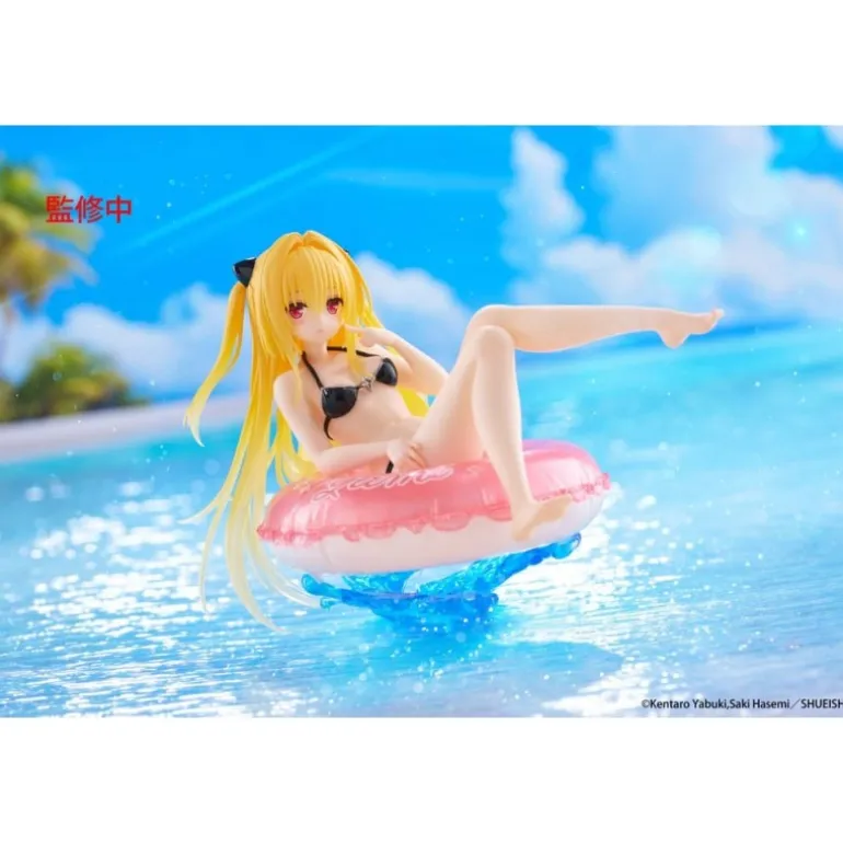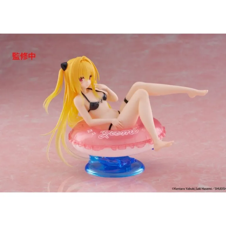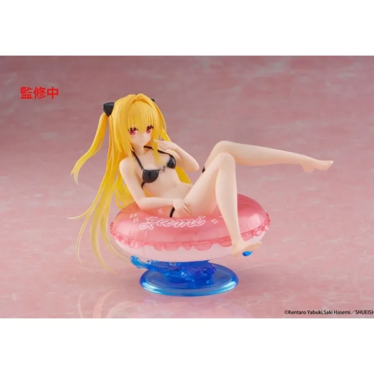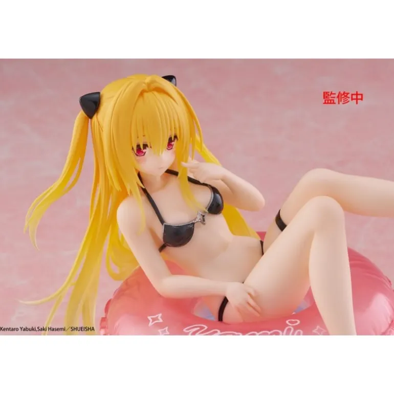 Descubre la estatua de PVC de To Love-Ru Darkness que captura a Golden Darkness en una relajante pose sobre un flotador rosa. Esta figura de 10 cm destaca por su detallado diseño, con Golden Darkness luciendo un bikini negro y su distintivo cabello rubio y largo, adornado con lazos negros. El flotador añade un toque juguetón con la inscripción ‘Yami’ en un tono blanco sobre el rosa, con una base transparente que simula agua, dándole un efecto realista.