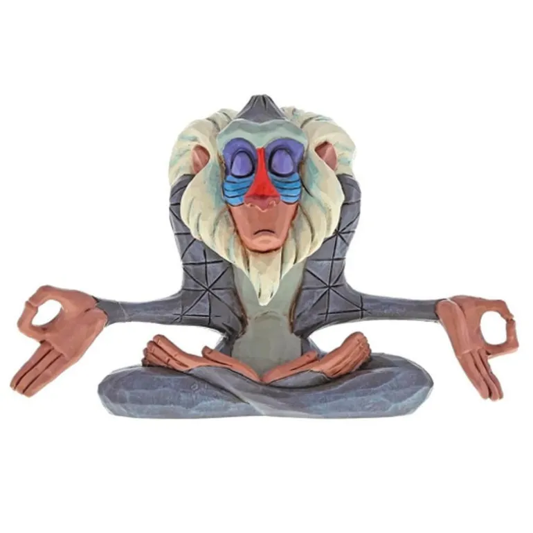 Se trata de una detallada figura que reproduce a Rafiki en una pose de meditación. Se trata de una pieza fabricada en resina, con una cantidad de detalles excepcional y fidelidad absoluta a los personajes originales, pintados a mano cuidadosamente. Mide aproximadamente 8 cm de alto.