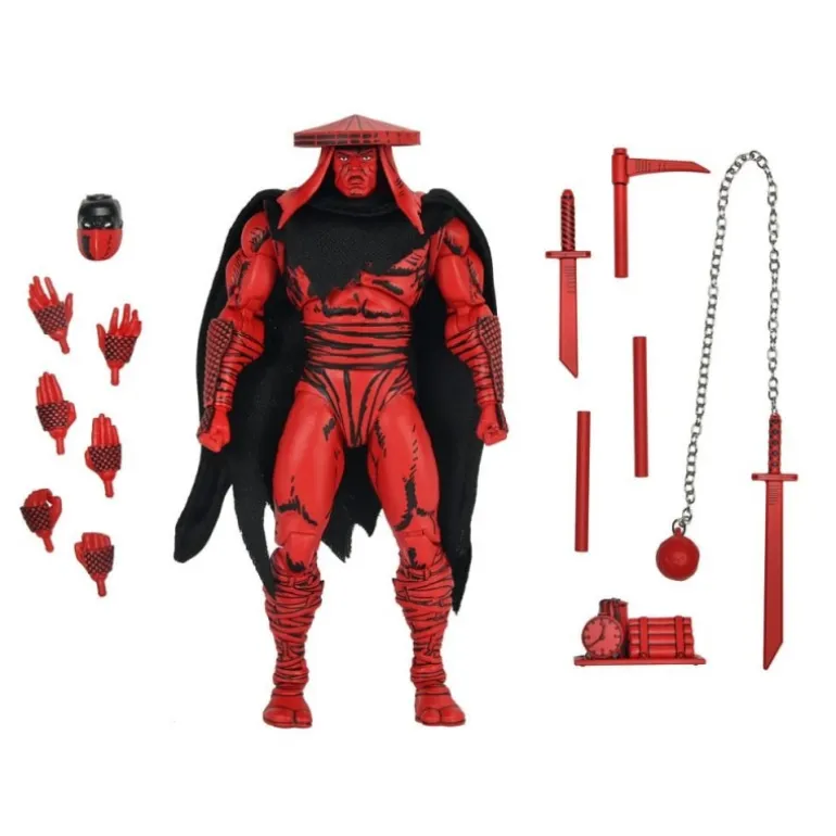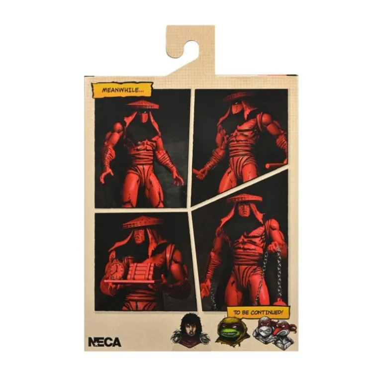 Viene con una capa negra que añade un toque dramático y un sombrero característico que completa su look. Además, el set incluye una variedad de accesorios: manos intercambiables, armas típicas de un ninja como espadas y cadenas. Fabricado por NECA, un nombre confiable en figuras de acción, este producto con licencia oficial es perfecto para coleccionistas o fans de las Tortugas Ninja que buscan expandir su colección.