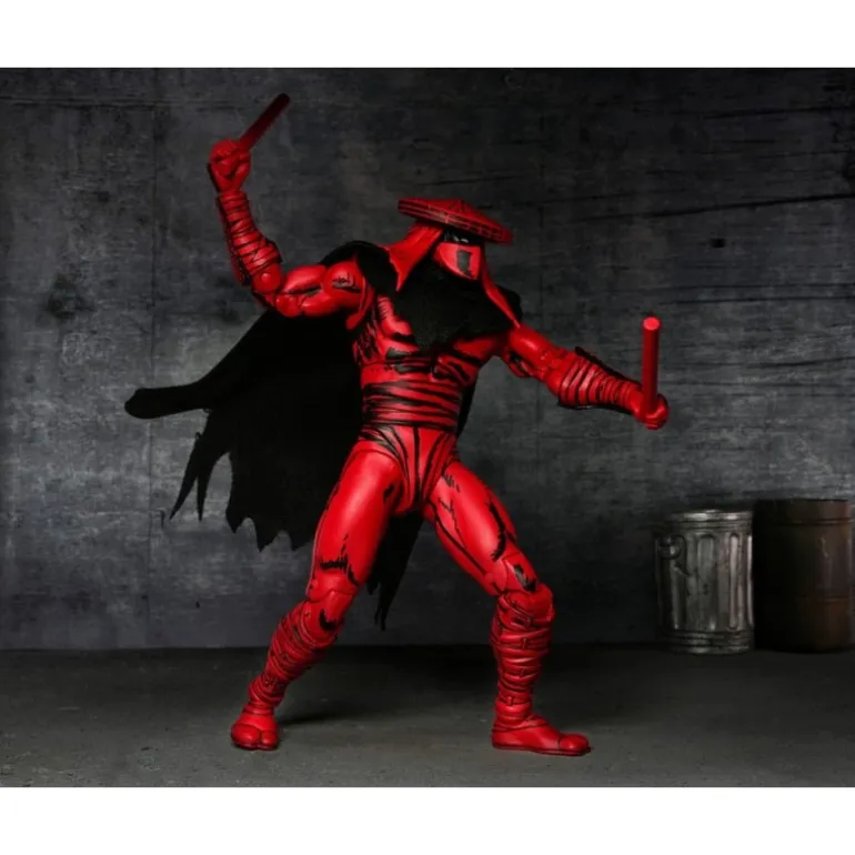 La figura Red and Black Foot Assassin de 18 cm recrea un enigmático y amenazante personaje del universo Teenage Mutant Ninja Turtles. Vestido en un vibrante rojo con detalles en negro, el diseño captura la esencia del Foot Clan de los cómics originales de Mirage. Esta figura articulada está cuidadosamente esculpida, mostrando una apariencia musculosa y detalles precisos que resaltan su carácter intimidante.