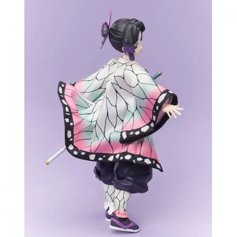 La figura de Shinobu Kocho del anime Demon Slayer: Kimetsu no Yaiba es una pieza coleccionable fabricada en PVC de alta calidad. Con un tamaño de aproximadamente 14 cm, esta estatua captura a la perfección la elegancia y el detalle de Shinobu, uno de los personajes más queridos del anime. Su distintivo atuendo, con un kimono que combina tonos rosas, morados y blancos, está representado con un nivel de detalle admirable, incluyendo las delicadas alas de mariposa en el cabello.