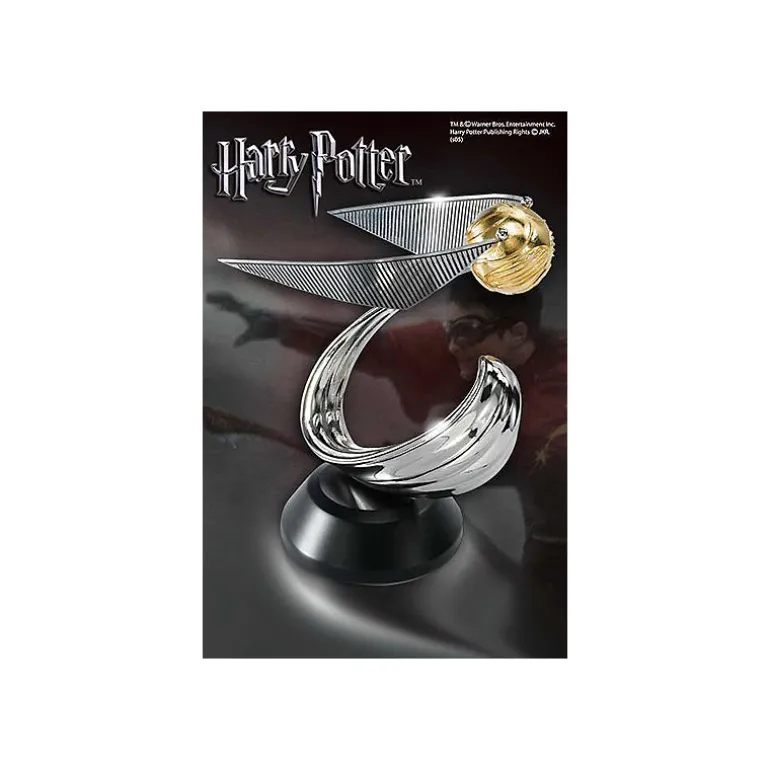 Se trata de la preciosa Snitch Dorada (o dorado) que todos perseguían mientras jugaban al Quidditch, pero en un tamaño realmente expectacular, con unos 18 cm de altura para que puedas tenerla siempre expuesta en tu vitrina o escritorio.