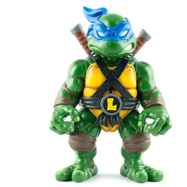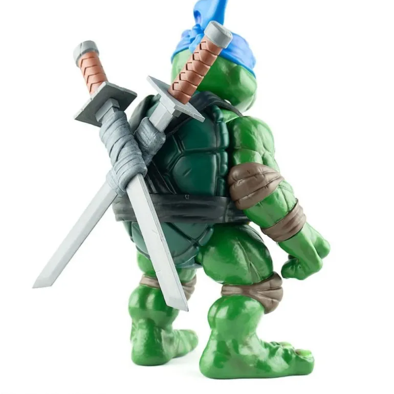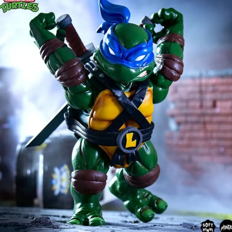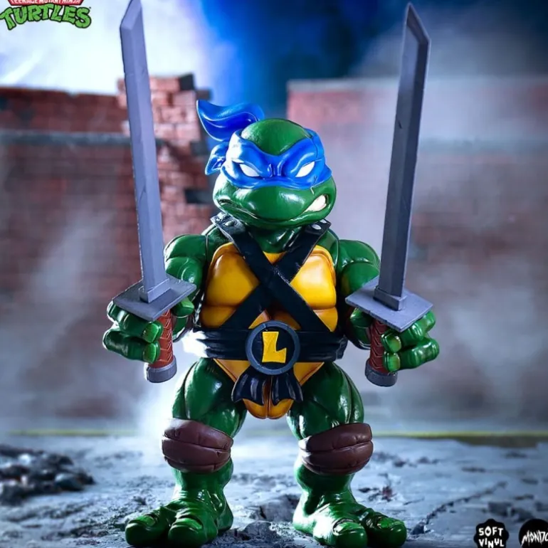 Leonardo, con su icónica máscara azul y sus espadas gemelas, está listo para proteger las calles de la ciudad. Los detalles en su caparazón y el acabado de su vinilo suave dan un toque especial de realismo a esta pieza.