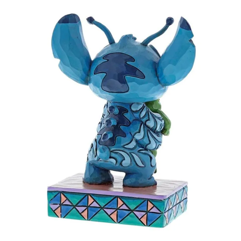 En esta ocasión, tenemos una preciosidad de figura del alienígena más divertido y adorable de Disney, Stitch de la peli Lilo & Stitch, con una rana que sujeta con sus cuatro bracitos. Tiene todos los detallitos característicos de Stitch reproducidos minuciosamente, además de los adornos propios de Jim Shore. Mide aproximadamente 12 cm de alto.