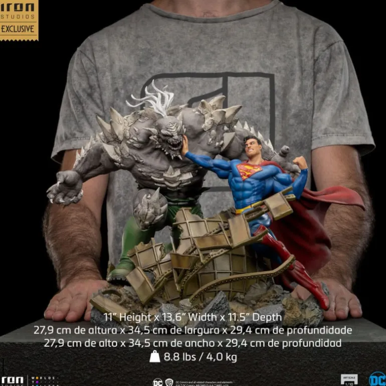 Revive uno de los enfrentamientos más épicos del universo DC Comics con esta impresionante figura a escala 1/10 de Iron Studios. Diseñada con un nivel de detalle inigualable, esta pieza captura a Superman y Doomsday en pleno combate, inmortalizando la intensidad de su legendaria batalla.