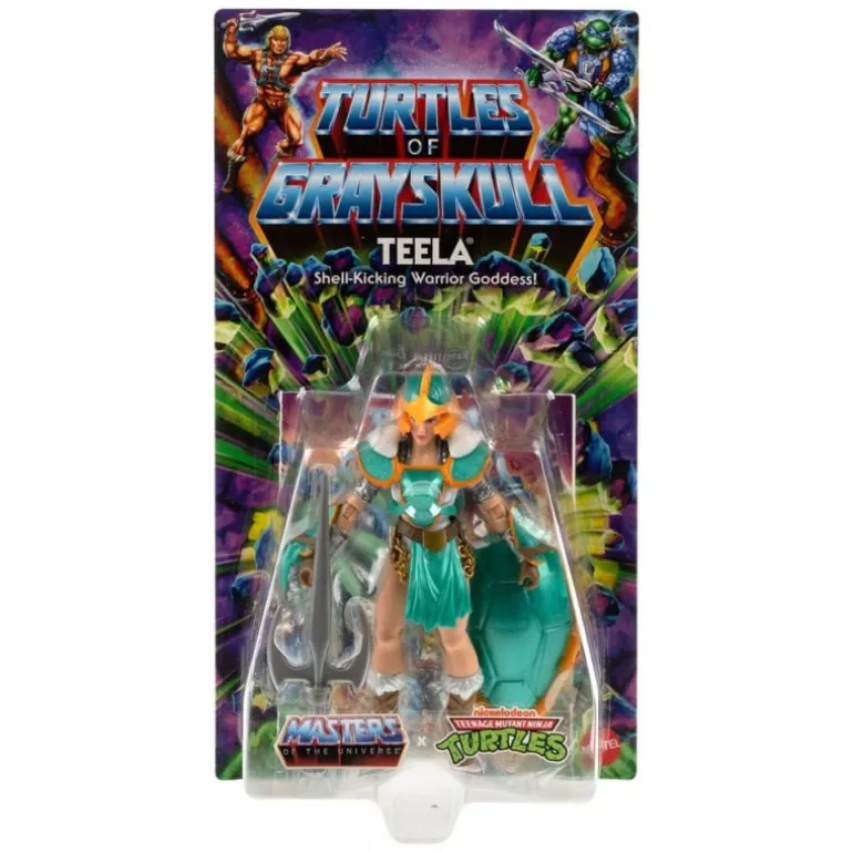 Descubre la impresionante figura de Teela de la colección MOTU x TMNT: Turtles of Grayskull. Esta figura articulada de 14 cm captura el icónico estilo de Teela fusionado con elementos de las Tortugas Ninja, ideal para coleccionistas de ambas franquicias.