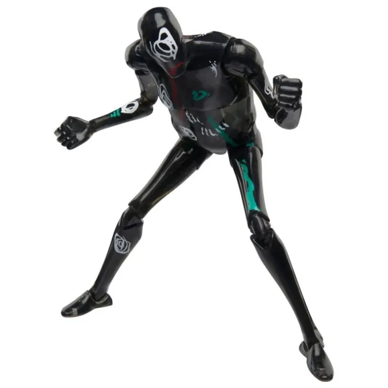 La figura de The Spot destaca por su acabado en color negro brillante, decorado con manchas blancas y detalles en verde y rojo que capturan perfectamente su apariencia singular y misteriosa. Cada articulación en cabeza, brazos y piernas permite poses dinámicas y creativas.