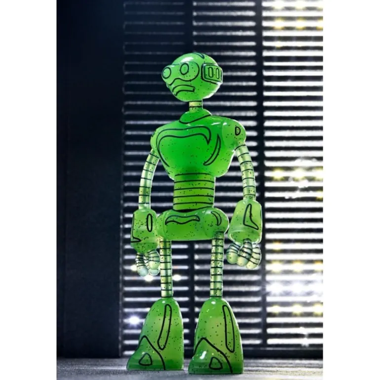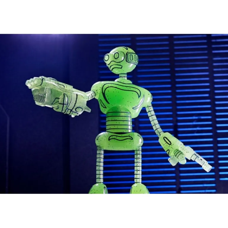 Descubre la impactante Figura Transmat Fugitoid GID de 18 cm, una pieza esencial para los seguidores de las Tortugas Ninja y los Mirage Comics. Fabricada por NECA, esta figura está diseñada con un llamativo color verde translúcido que brilla en la oscuridad, aportando un toque único a tu colección.