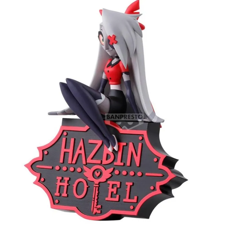 Con una altura de 9 cm, es perfecta para decorar escritorios y vitrinas con su diseño estilizado. Vaggie se presenta en una pose dinámica y expresiva, luciendo su característico parche en el ojo y su largo cabello, lo que refleja perfectamente su personalidad protectora y decidida.