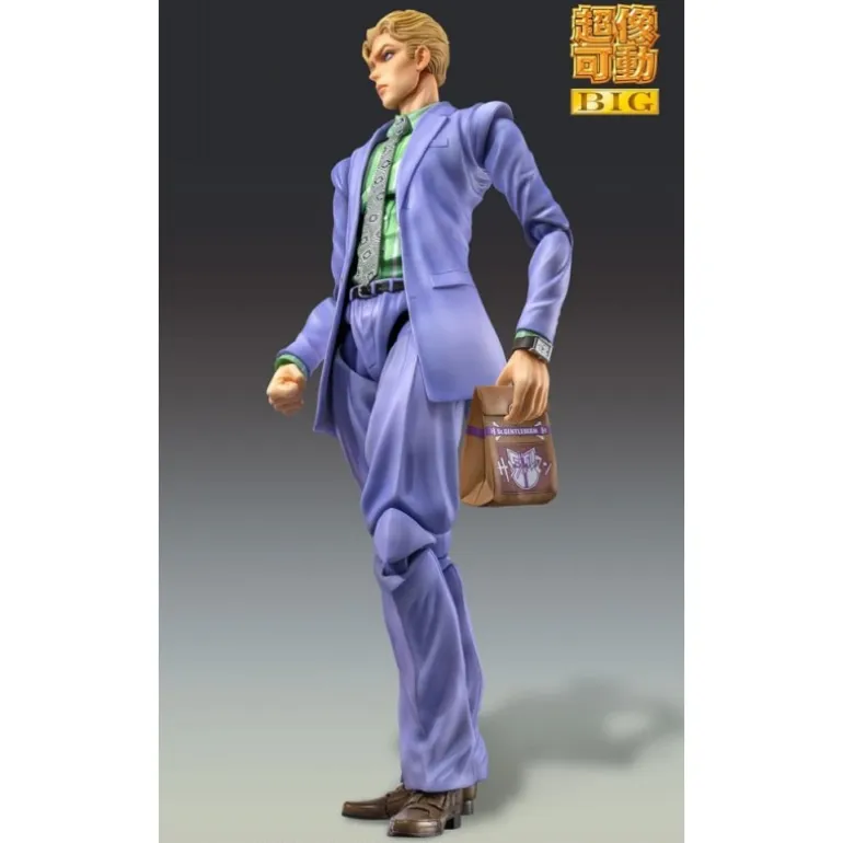 Descubre la figura articulada de Yoshikage Kira de JoJo’s Bizarre Adventure Part 4, creada por el renombrado fabricante Medicos Entertainment. Esta figura de alta calidad mide aproximadamente 21 cm, y está diseñada con gran atención al detalle. Viste un elegante traje púrpura y viene con una variedad de accesorios intercambiables, como manos y corbatas, ideal para recrear escenas icónicas del manga. Incluye una caja con ventana que la convierte en un regalo perfecto para coleccionistas y fans de la serie.