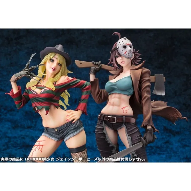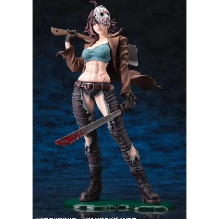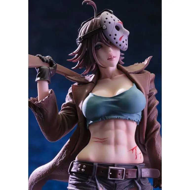 La estatua representa a Jason en una interpretación estilizada y sexualizada, ideal para adultos que aprecian el arte contemporáneo del horror. Luce un atuendo detallado con un top ajustado, pantalones desgarrados y la icónica máscara de hockey, todo con acabados exquisitos que capturan la esencia del personaje. Con licencia oficial, es el complemento perfecto para tu colección de ‘Freddy vs. Jason’.