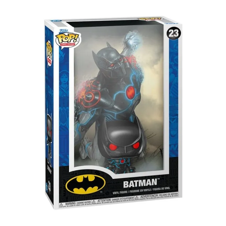 Este exclusivo POP! Comic Cover de Batman presenta al Caballero Oscuro en su versión cibernética, inspirado en el cómic Batman: The Murder Machine #1. Es perfecto para coleccionistas de DC Comics que deseen añadir una pieza impactante a sus vitrinas. El diseño incluye un fondo ilustrativo del cómic original, encapsulado en un marco transparente para asegurar su conservación y exhibición.