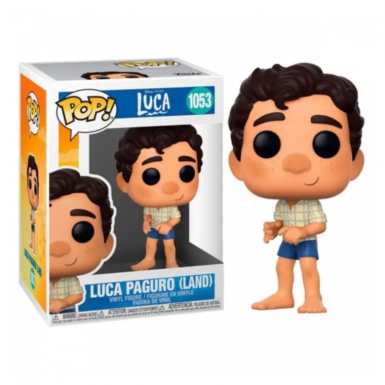 Este detallado Funko captura a Luca con su característico cabello rizado, camisa a cuadros y pantalones cortos azules, mostrando su expresión curiosa y aventurera. Es un elemento imprescindible para cualquier fan de Disney o coleccionista de Funkos.
