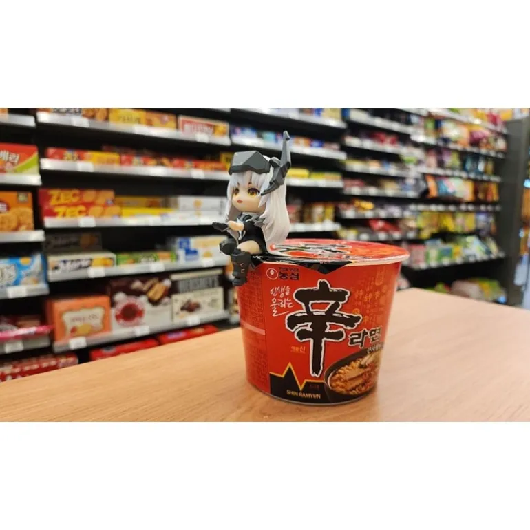 Presentamos la encantadora estatua de PVC de ‘Goddess of Victory: Nikke’, especialmente diseñada para servir como cup noodle holder. Con un tamaño de aproximadamente 10 cm, esta figura captura a Snow White con un delicado diseño chibi. La figura posee cabello blanco, ojos dorados y un atuendo en tonos gris y blanco, acompañado de un casco y diversos detalles en gris oscuro.