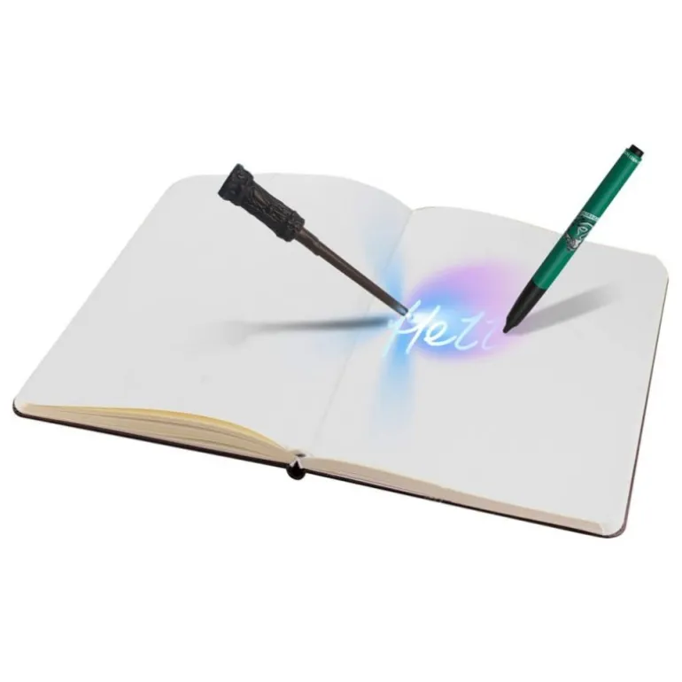 Este diario permite a los fans crear sus propios mensajes secretos utilizando un bolígrafo de tinta invisible. Lo escrito solo puede revelarse mediante una luz ultravioleta, proporcionada por una lámpara con diseño de varita mágica. Ideal para niños mayores de 6 años, viene con 3 pilas LR41 incluidas para que puedan empezar a usarlo de inmediato.
