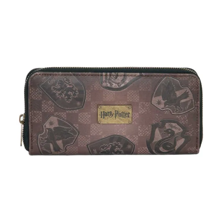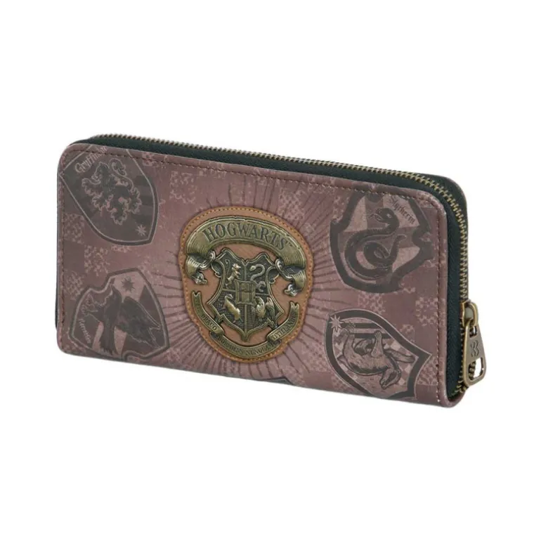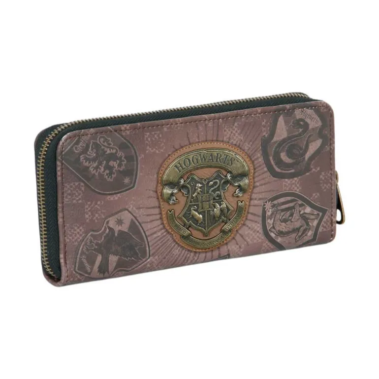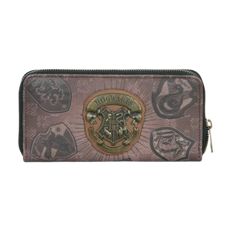 Este billetero muestra el escudo de Hogwarts rodeado por las otras casas, lo que lo hace un artículo especialmente atractivo para los fans de la saga. Su diseño cuidadoso y detallado lo convierte en una pieza única y de colección.