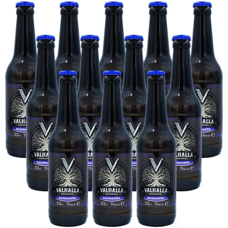 En este caso tenemos una edición especial de nuestros amigos de Bodegas Valhalla. Se trata de la hidromiel Valhalla Ragnarök, un hidromiel especial de 11º de alcohol que se ideó y diseñó en los peores momentos del confinamiento ocasionado por la pandemia del Covid19 y que salió adelante con la ayuda de muchos amantes del hidromiel vía crowfunding.