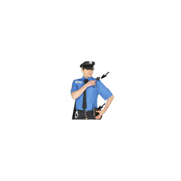 Intercomunicador de policía. Accesorio perfecto para que lo acompañes con nuestros disfraces de policía, guardia civil, sargento, comandante, etc….. Recuerda que en disponemos de todo tipo de disfraces, complementos, pelucas, maquillajes….. Tienes 14 días par su devolución