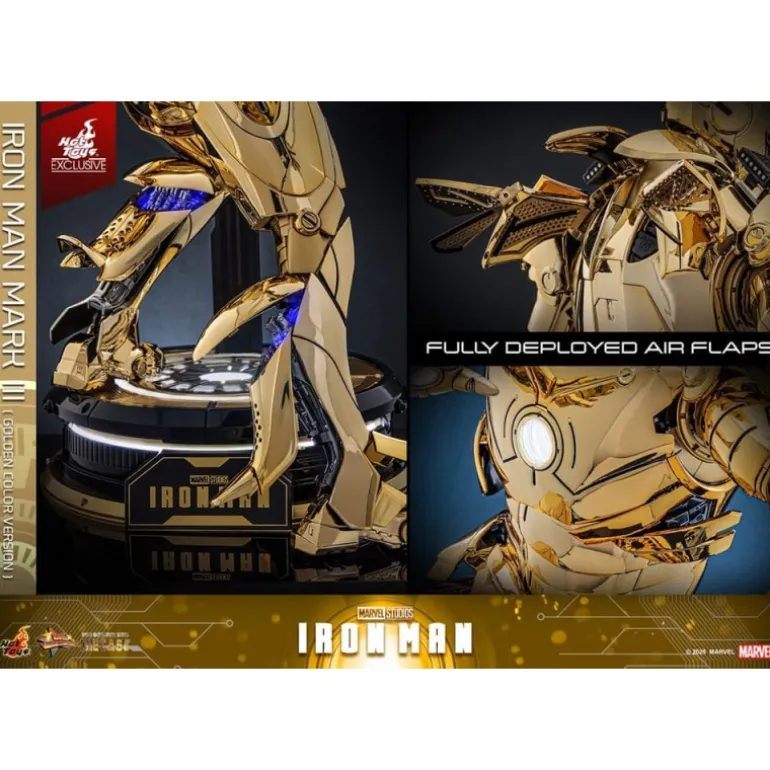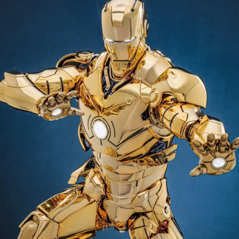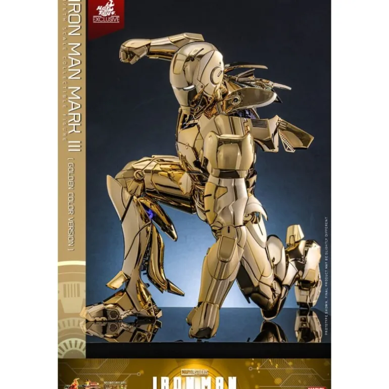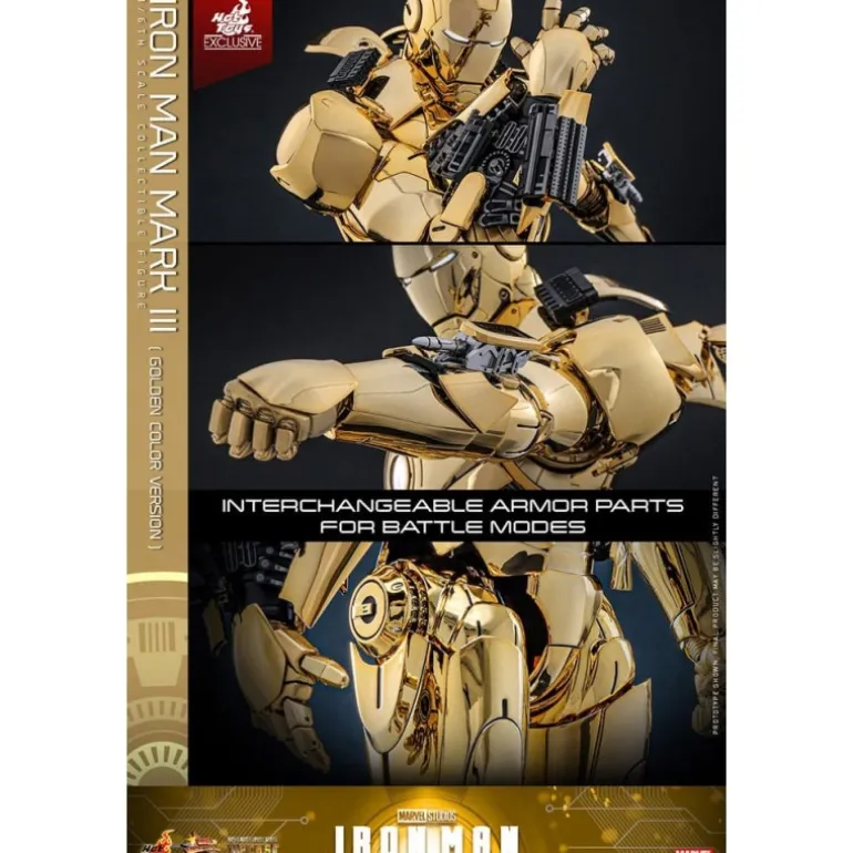 Descubre la exclusividad y el lujo con la figura articulada Iron Man Mark III en su versión dorada. Esta espectacular pieza, a escala 1/6, mide aproximadamente 33 cm, capturando cada detalle de la armadura icónica de Iron Man en un brillante acabado dorado. Fabricada por Hot Toys, un líder en figuras de colección, esta edición limitada a 3000 unidades ofrece partes de armadura intercambiables para representar modos de batalla y flaps de aire desplegables.