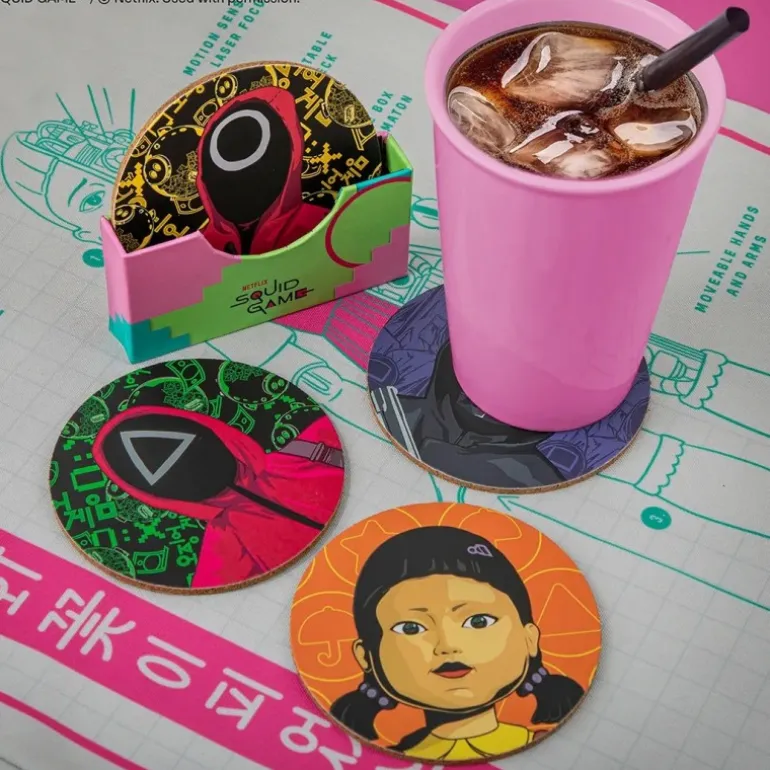Regala o adquiere estos posavasos para sumergirte en el mundo de Squid Game mientras disfrutas de tus bebidas favoritas. Son el obsequio ideal para cualquier coleccionista o amante de la serie, ofreciendo un toque de emoción a cada sorbo.
