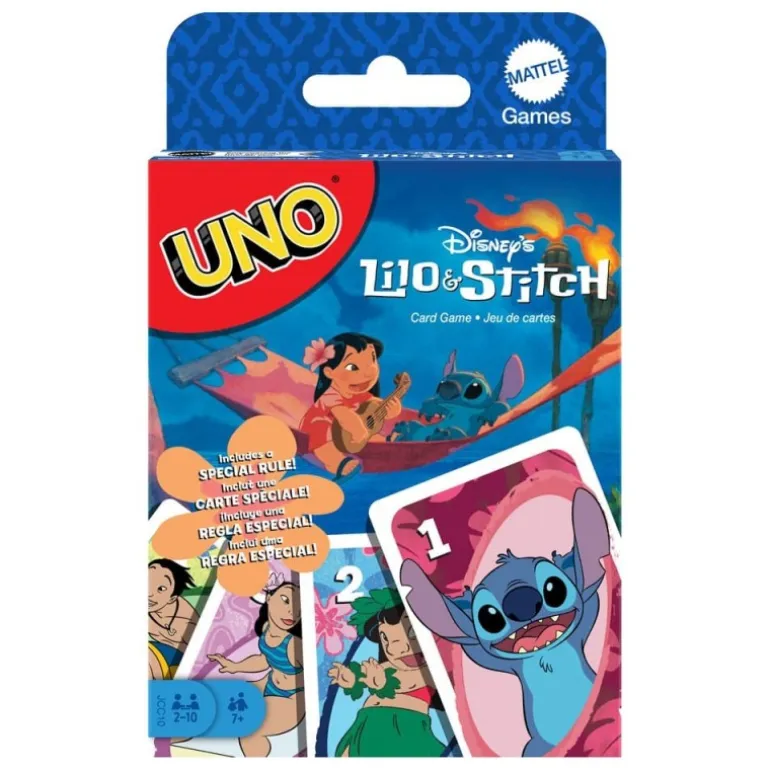 Disfruta de una emocionante partida de UNO con el Juego de Cartas Lilo & Stitch. Este producto con licencia oficial de Mattel trae el encantador mundo de Lilo & Stitch al clásico juego de cartas UNO, ofreciendo una experiencia divertida para toda la familia. Diseñado para 2 a 10 jugadores y apto para mayores de 7 años, es perfecto para reuniones familiares o tardes de juego.