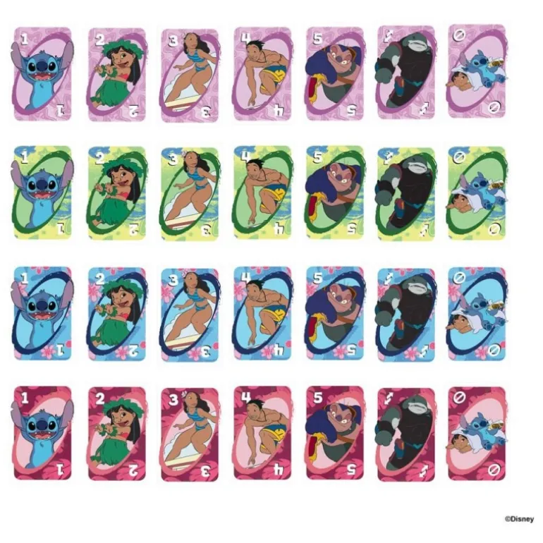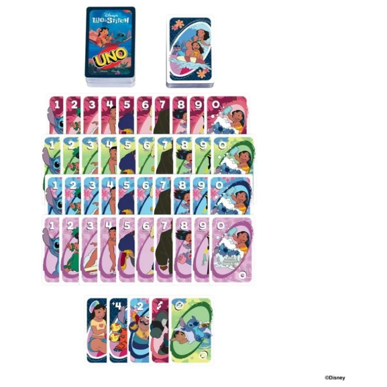 El juego incluye una regla especial que añade un giro único a tus partidas. Las tarjetas presentan ilustraciones vibrantes de tus personajes favoritos, incluyendo a Lilo, Stitch y otros amigos, que llenarán de color cada partida. El set viene con un manual de instrucciones multilingüe, asegurando que jugadores de diferentes orígenes puedan disfrutar de la experiencia sin problemas.