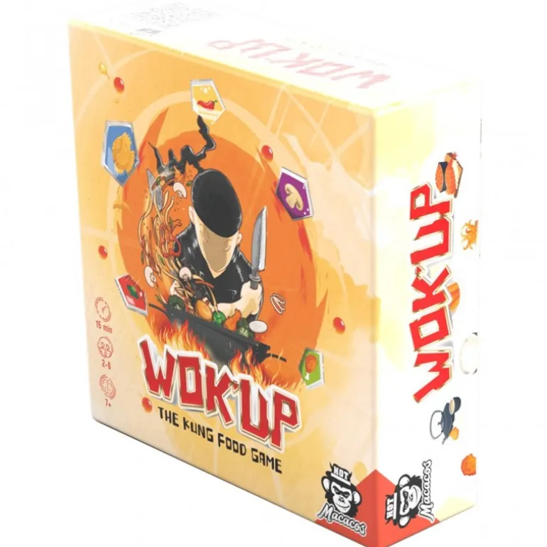 ¡Bienvenido al campeonato de Kung Food con Wok’ Up! Este emocionante juego de cartas pone a prueba tu rapidez culinaria mientras compites por el título de Gran Maestre del Wok. Con un diseño vibrante, la caja muestra un cocinero ninja rodeado de ingredientes voladores, que captura la esencia divertida y competitiva del juego.