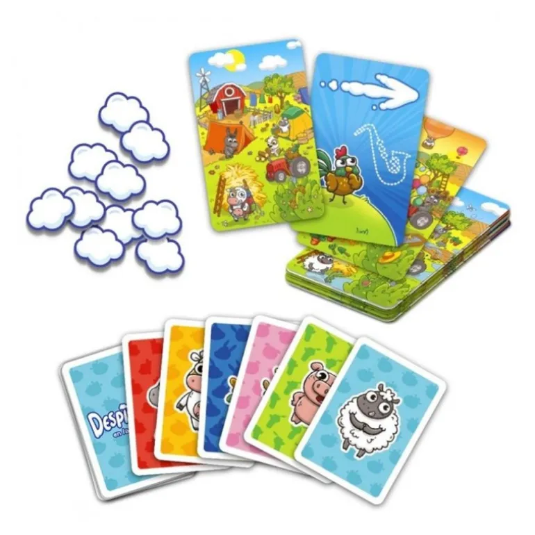 Con un tiempo de juego aproximado de 15 minutos, permite que de 2 a 6 jugadores se unan a la diversión, desarrollando habilidades de memoria y estrategia. El diseño colorido y atractivo está lleno de cartas ilustradas y fichas de nube que añaden un toque visual encantador.