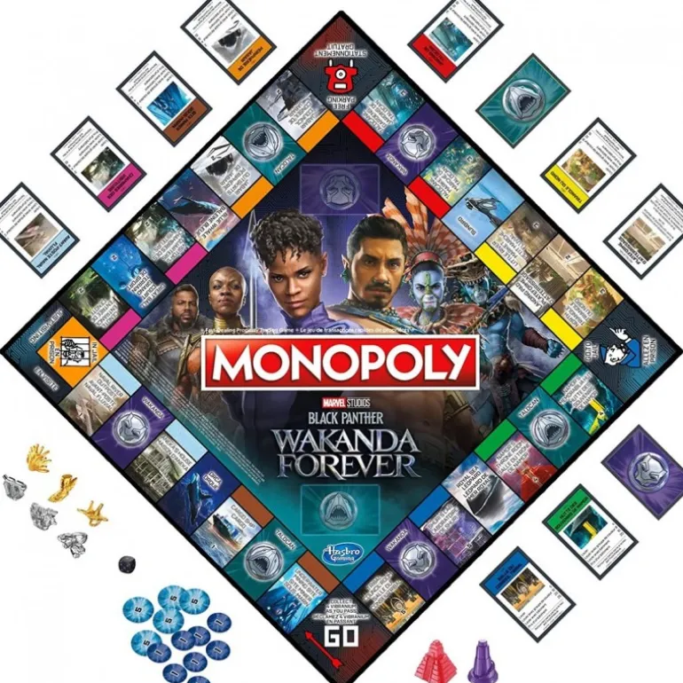 Descubre el Monopoly Black Panther: Wakanda Forever, un emocionante juego de mesa para mayores de 8 años en el que fans de todo el mundo pueden sumergirse en el universo de Marvel. Este juego ofrece la oportunidad de elegir un lado: lucha como un Wakandan o únete a los Talokanil en un apasionante combate en tierra y mar.