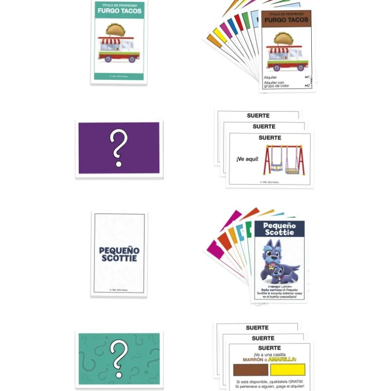 El juego cuenta con 6 adorables peones: Pingüino, Coche, Patito, Perro, Hazel y Pequeño T-Rex. Cada nivel tiene su propio set de cartas y dinero, adaptando las reglas a la edad de los jugadores. Ideal para momentos familiares y para introducir a los más jóvenes en el mundo de las finanzas de una manera accesible y divertida.