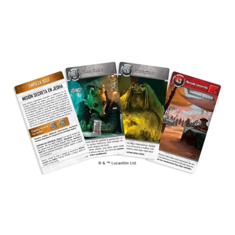 Las aventuras incluyen: Un retraso imprevisto, donde los jugadores deben escapar de un Destructor Imperial; Huida de Hoth, en la que se escapa de una base rebelde en ataque; y Misión secreta en Jedha, donde se recupera un artefacto robado. Con 190 cartas, un mapa de Jedha, un libreto de soluciones y un reglamento, este juego es perfecto para capturar la emoción de una Escape Room desde casa.