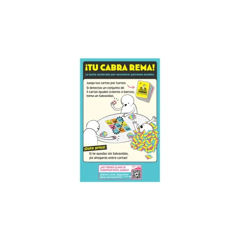 ¡Descubre el emocionante universo de ¡Tu Cabra Rema!, un juego de mesa donde la velocidad es tu mejor aliada! Diseñado para jugadores de 7 años en adelante, este vibrante juego pondrá a prueba tus reflejos y habilidad para detectar patrones. En una cuadrícula de 3×3, coloca tus cartas estratégicamente y sé el primero en gritar ¡Salvavidas! cuando logres alinear tres cartas iguales en fila, columna o diagonal.