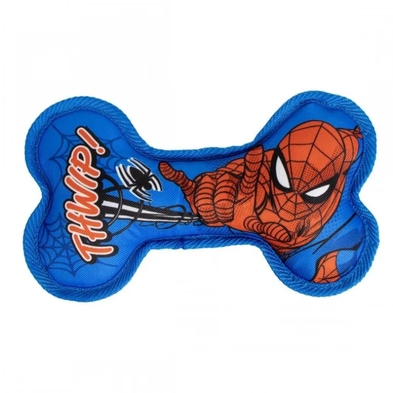 El diseño incluye detalles como el texto «THWIP!» que hace alusión al sonido característico del superhéroe, lo cual añadirá un toque especial a las sesiones de juego. Además, su estructura texturizada favorece la higiene dental de tu mascota mientras juega. Con sonido incluido, cada mordisco será una experiencia auditiva y lúdica que mantendrá a tu perro entretenido durante horas.