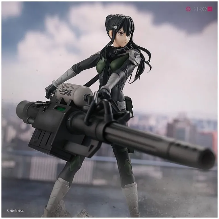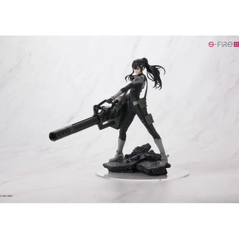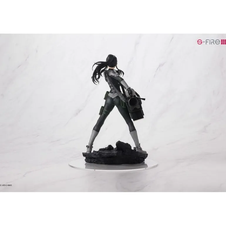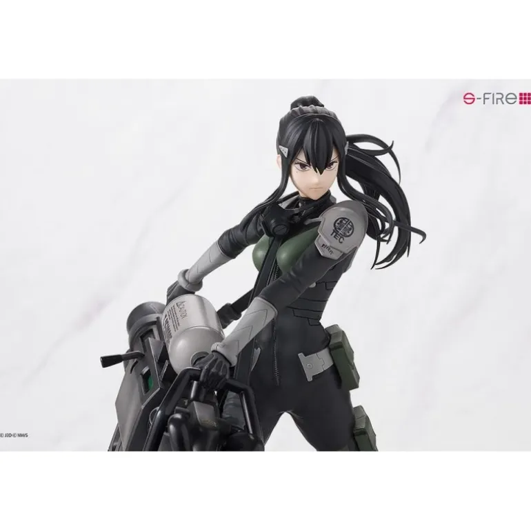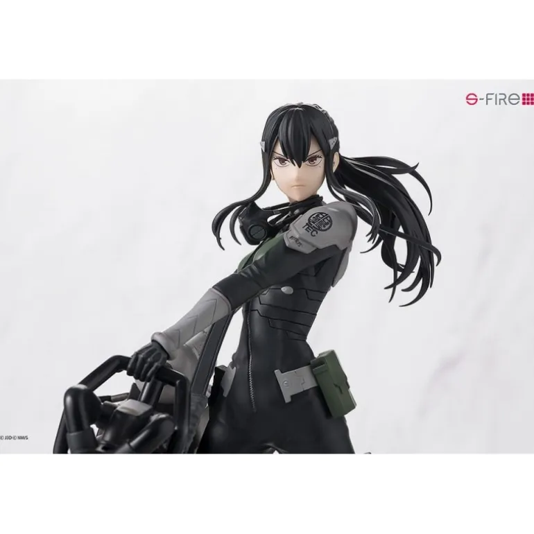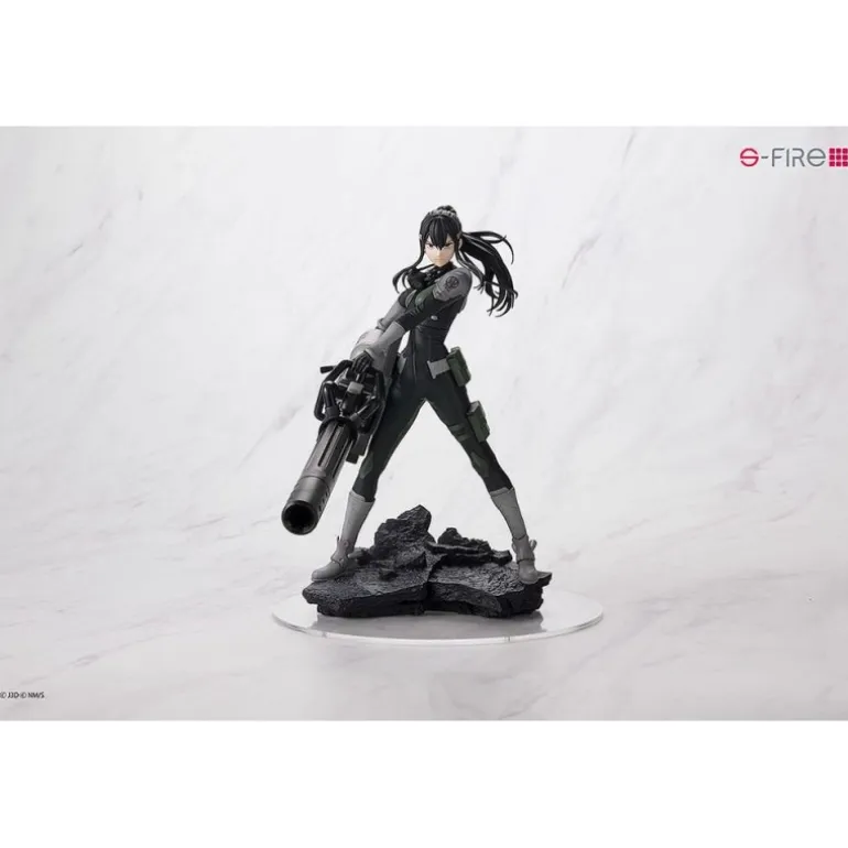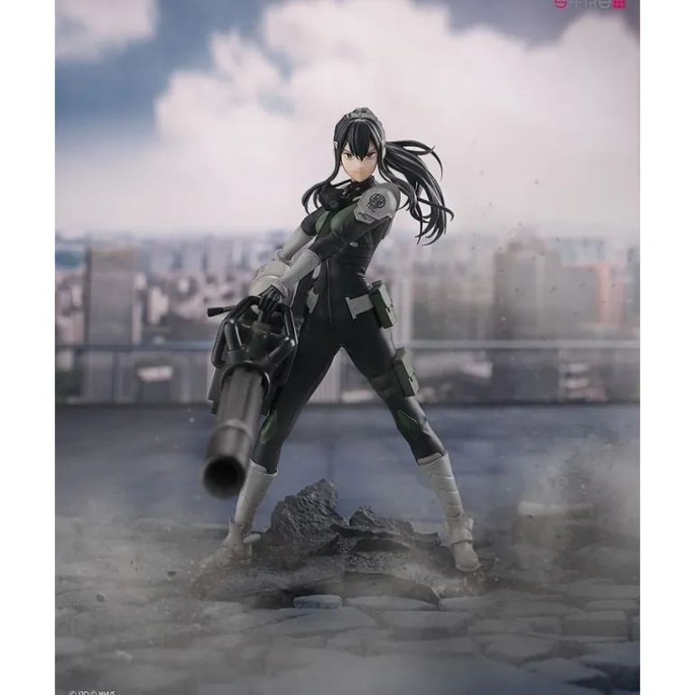 Descubre la impresionante estatua de Mina Ashiro del popular manga Kaiju No. 8. Esta figura a escala 1/7 mide aproximadamente 23 cm y está fabricada en PVC de alta calidad. Mina Ashiro está representada en una pose dinámica y lista para la acción, portando un arma masiva que destaca por su detallado acabado. El diseño presenta un traje táctico en negro y gris con detalles en verde, complementado por una base sólida que simula un terreno rocoso, brindando estabilidad y estética a la pieza.