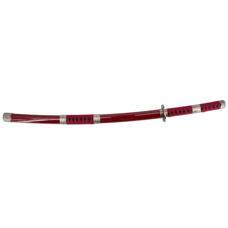 Es una réplica de la espada Sandai Kitetsu que lleva Zoro durante los episodios que mide un total de 104 cm y con la hoja de bambú negra con dentado satinado, mango con encordado burdeos.