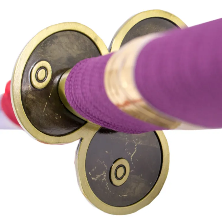 Es una réplica de la espada Enma que lleva Zoro durante los episodios que mide un total de 103 cm y con la hoja de acero sin filo acabada en negro con detalles en el corte en negro y lila, con vaina lila con detalles dorados y encordado rojo, mango lila con con detalles dorados.
