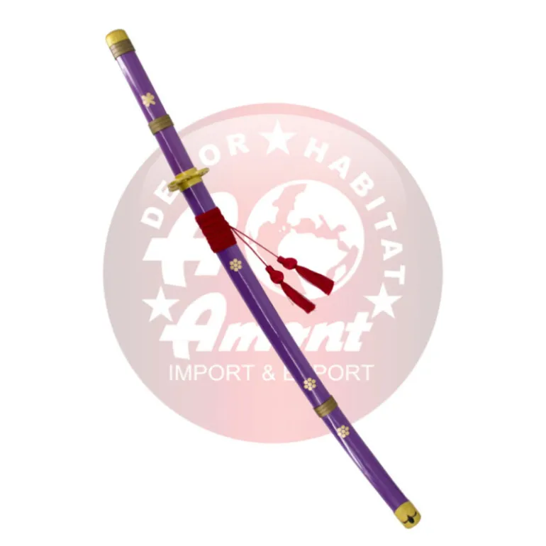 Es una réplica de la espada Enma que lleva Zoro durante los episodios que mide un total de 103.5 cm y con la hoja de acero sin filo acabada en negro con detalles en el corte amarillos y verdes, con vaina lila con detalles dorados y encordado rojo, mango lila con con detalles dorados.