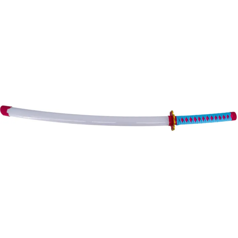 Es una réplica de la espada que lleva Kanroji Mitsuri durante los episodios y que mide un total de 101 cm y con la hoja de bambú de 6 mm de grosor, acabada en negro con detalles rosas, mango con encordado azul cielo con piel de imitación de raya color rosa con funda blanca.