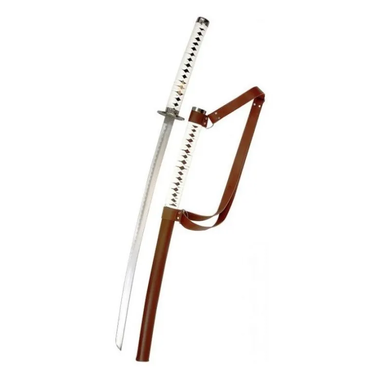 Es una réplica de la espada que lleva Michonne durante los episodios que mide un total de 103 cm y con la hoja de acero sin filo, vaina de curpiel marrón con encordado blanco y cinta para colgar en la espalda, mango encordado blanco.