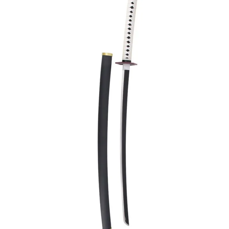 Es una réplica de la espada que lleva Tomioka Giyuu durante los episodios que mide un total de 101 cm y con la hoja de acero sin filo, mango con encordado blanco con piel de imitación de raya color negro.