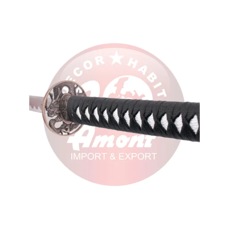 Mide un total de 102 cm y esta fabricada acero. Tiene hoja de acero sin filo, con vaina blanca con decoración de dragón, mango con encordado negro, con soporte. Fíjate bien en las fotos para ver más detalles que tienen la hoja y la funda.