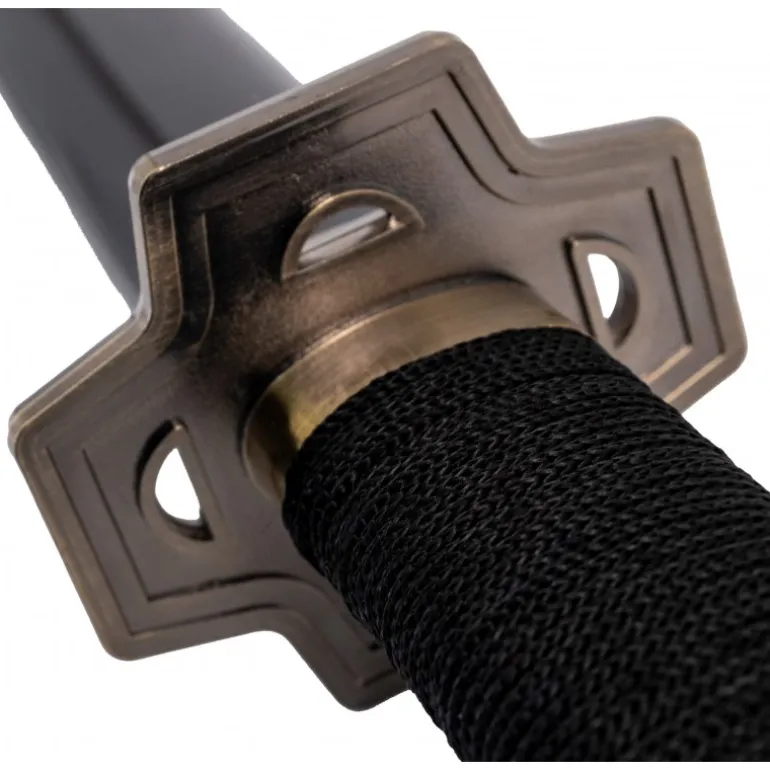 Sumérgete en el universo de One Piece con esta espectacular réplica de la Katana Yubashiri de Zoro. Con un tamaño total de 103 cm, esta espada captura la esencia del famoso espadachín del anime. La hoja, fabricada en bambú, presenta un acabado en negro con dentado satinado, ofreciendo un diseño auténtico y detallado. El mango, recubierto con encordado negro, asegura un agarre firme y cómodo.