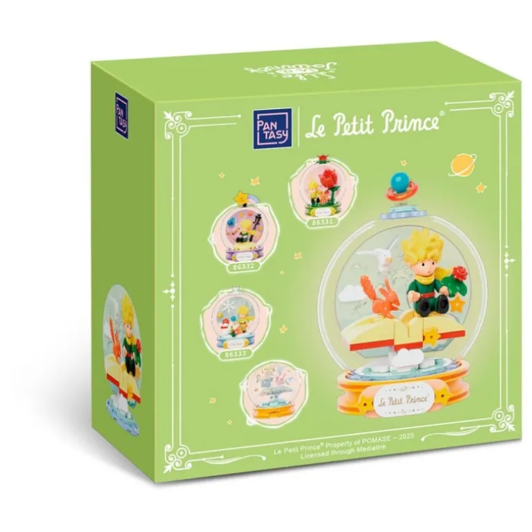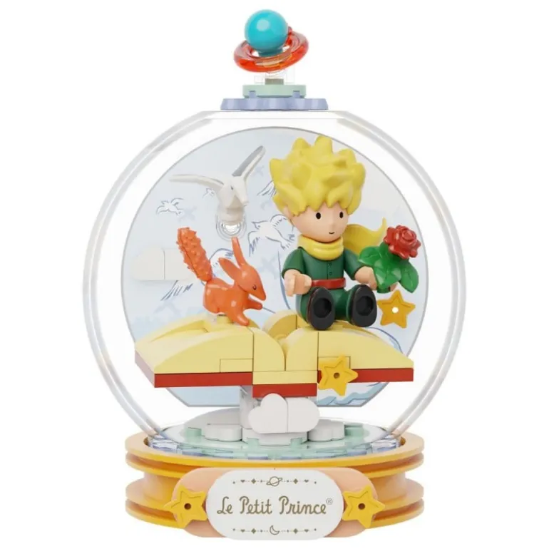 Descubre el Kit de Construcción El Principito Book Soaring, un juguete encantador para niños desde los 6 años. Este set, con licencia oficial de Pantasy, captura la esencia del clásico cuento en una encantadora esfera transparente. En su interior, el Principito, con su inconfundible cabellera dorada y su bufanda amarilla, se acompaña de un zorro naranja y una rosa roja, sobre un escenario de nubes y estrellas.