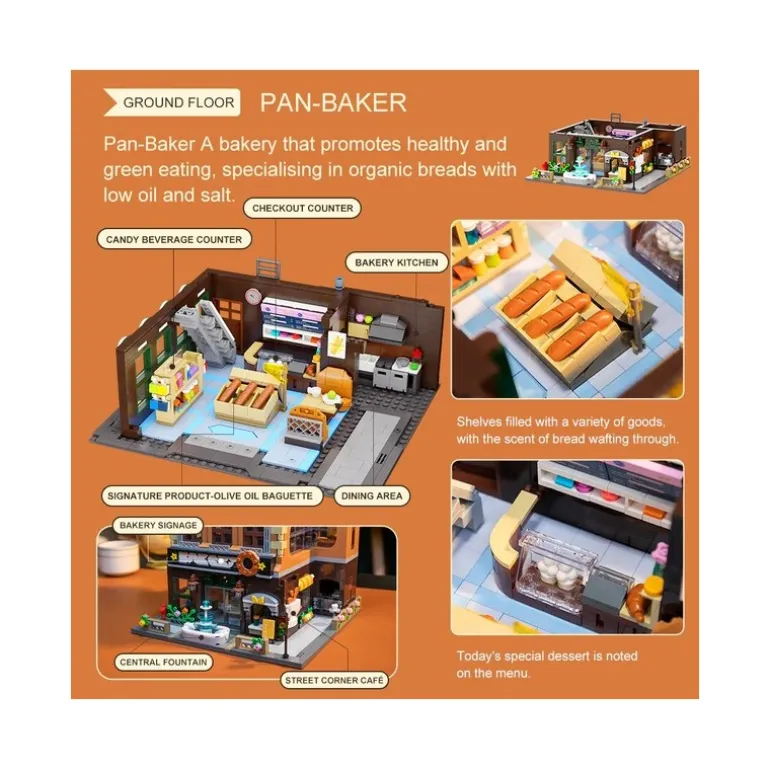 Descubre el Kit de Construcción Joyside Series Bakery de Pantasy, un regalo perfecto para los jóvenes constructores y amantes del detalle. Este set cuenta con 2010 piezas que, una vez montadas, dan vida a una encantadora pastelería de tres pisos llena de detalles exquisitos. Con unas medidas de 40 x 15 x 19 cm, este modelo se alza como una magnífica pieza de exhibición, ideal para cualquier habitación.