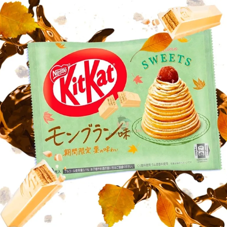 ¡Descubre una experiencia única con el KitKat Sabor Mont Blanc! Inspirado en el delicioso postre francés Mont Blanc, este KitKat combina el clásico crujiente de sus capas de galleta con un irresistible sabor a castaña y un toque dulce y cremoso. Un capricho perfecto que fusiona tradición europea y modernidad japonesa en cada bocado.